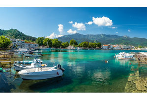 Lovely Limenaria is the second-largest town in Thassos, on the island’s southern coast. It boasts a long seaside promenade, sandy beaches and plenty of cafés and charming tavernas. Get out and explore, sample the local seafood and check out historic mining buildings nearby. The sunsets are a real hit too!