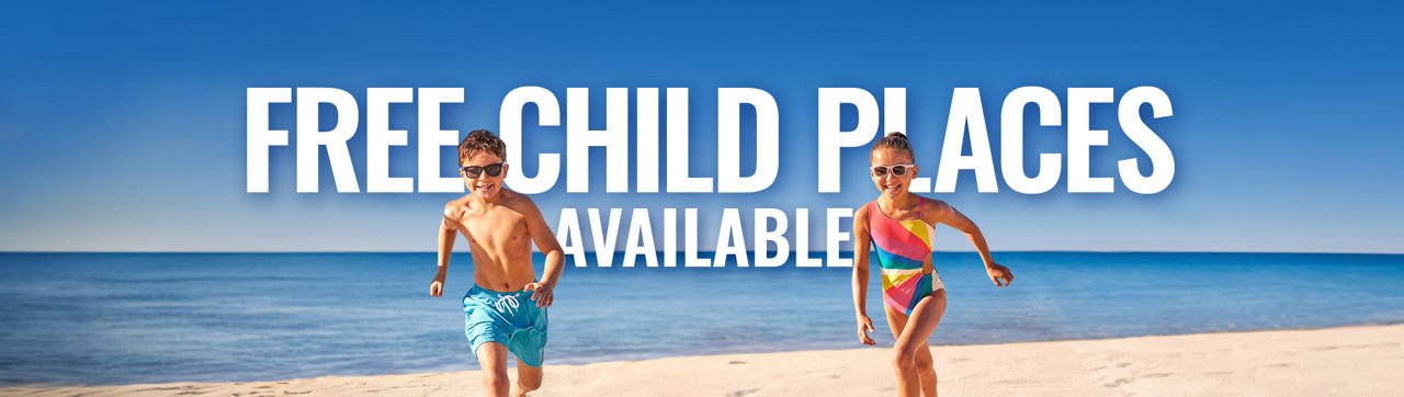 Summer's almost over but we've still got plenty of Free Child Places available. When two full-paying passengers book a room, one child can holiday for no extra cost. They can fly, pack their favourite toys, enjoy return hotel transfers~, stay and play for free!